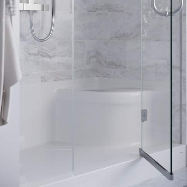 Aquatique 60 in. L x 32 in. W Single Alcove Shower Base Pan with Left Hand Drain and Integral Right Hand Seat in White