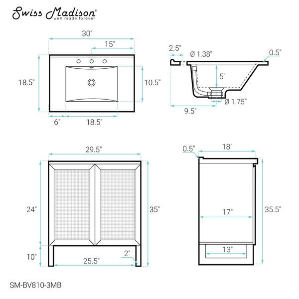 Arles 30 in. Bathroom Vanity in Natural Oak with Black, 3-Hole Ceramic Sink Top