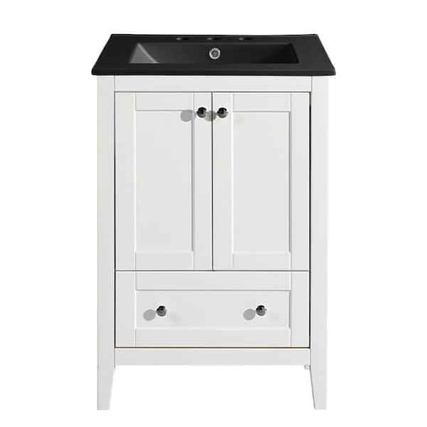 Cannes 24 in. White Bathroom Vanity in Black with 3-Hole Ceramic Sink Top
