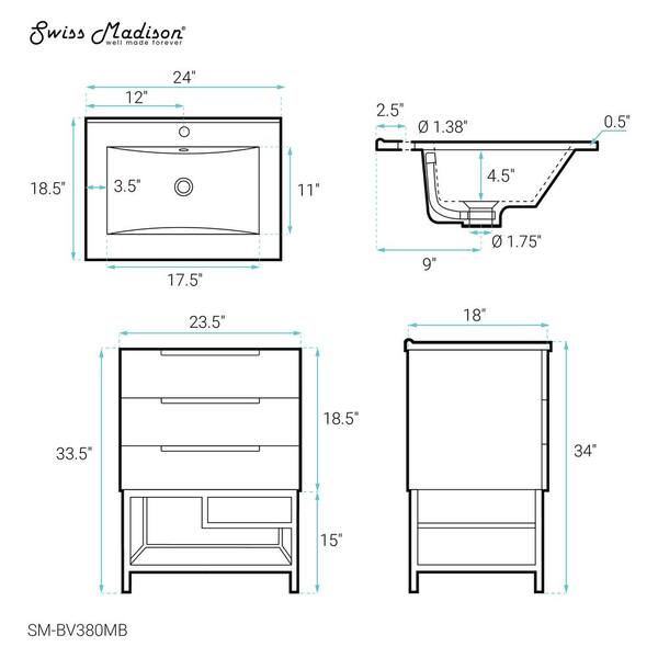 Carre 24 in. W. White Oak Bathroom Vanity in Black with Ceramic Sink Top