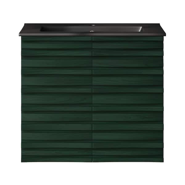 Cascade 24 in. Wall-Mounted Bath Vanity in Green Oak with Black Ceramic Sink Top