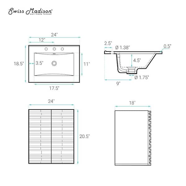 Cascade 24 in. Wall-Mounted Bath Vanity in Natural Oak with White Ceramic 3-Hole Widespread Sink Top