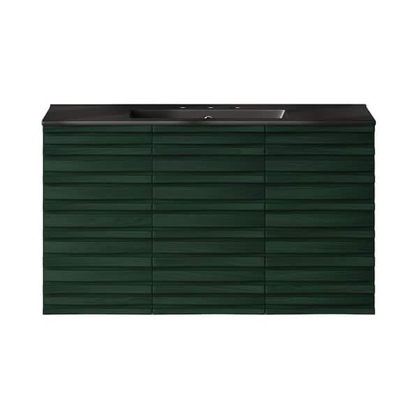 Cascade 36 in. Wall-Mounted Bath Vanity in Green Oak with Black Ceramic 3-Hole Widespread Sink Top