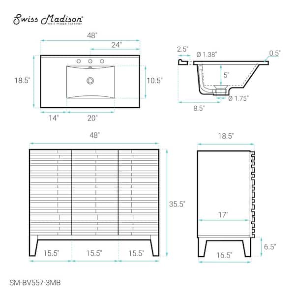 Cascade 48 in. W Natural Oak Bathroom Vanity in Black with 3-Hole Ceramic Sink Top