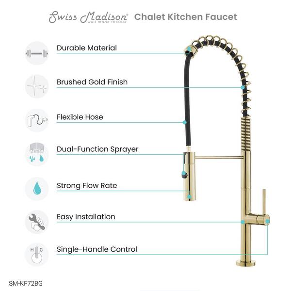 Chalet Single-Handle Pull-Down Sprayer Kitchen Faucet in Brushed Gold