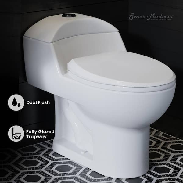 Chateau 1-piece 1.1/1.6 GPF Dual Flush Elongated Toilet in Glossy White with Black Hardware Seat Included