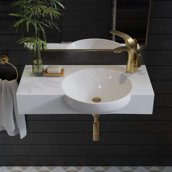 Chateau 29.31 in. Right Side Faucet Wall-Mount Ceramic Rectangular Bathroom Vessel Sink in Glossy White