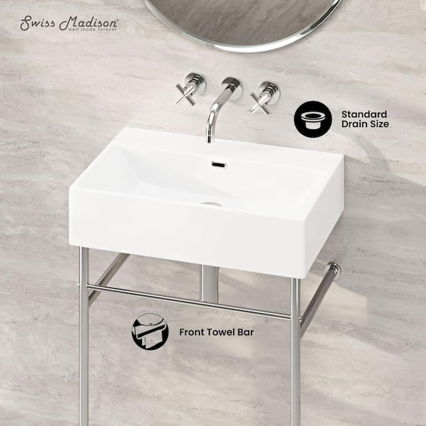 Claire 24 in. Rectangle Zero Hole Ceramic Console Sink with Polished Chrome Legs
