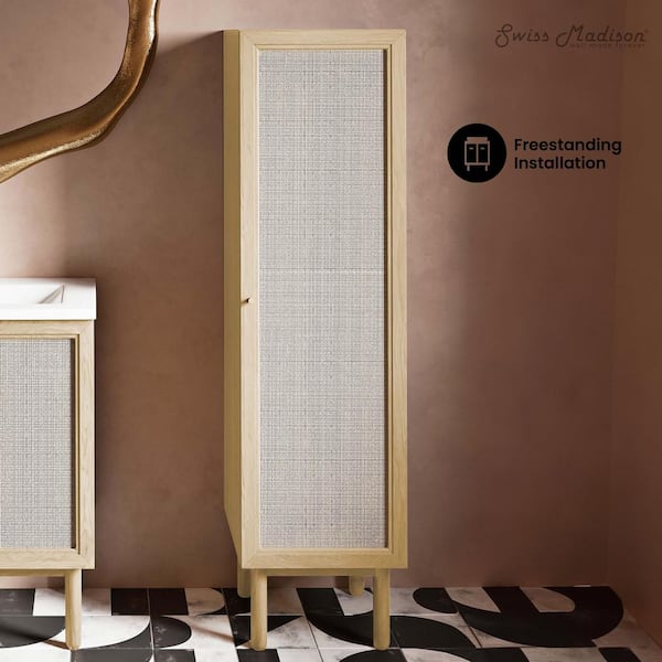 Classe 15.5 in. W x 15 in. D x 60 in. H Brown Freestanding Linen Cabinet in Natural Oak