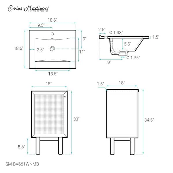 Classe 18 in. Brown Oak Bath Vanity with Black Ceramic Sink Top