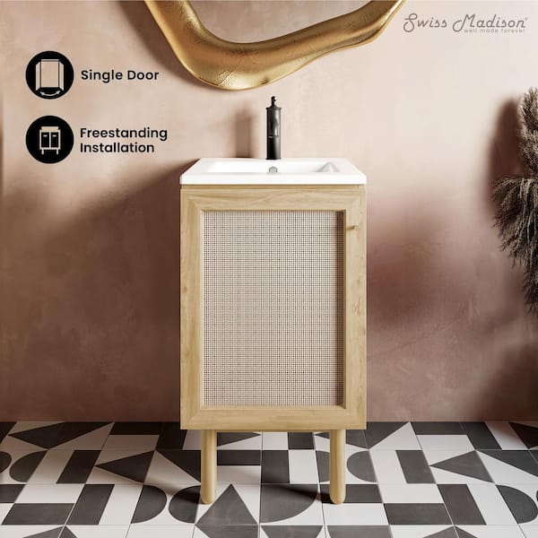Classe 18 in. Freestanding Bath Vanity in Natural Oak with White Ceramic Sink Top