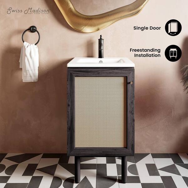 Classe 18 in. W x 17.87 in. D x 33.12 in. H Bathroom Vanity in Black with Glossy White Ceramic Top