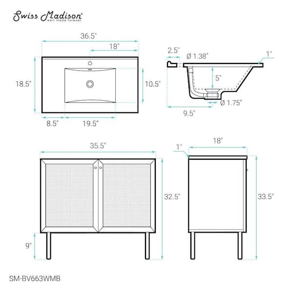 Classe 36 in. W Bathroom Vanity in White Oak with Black Ceramic Sink Top
