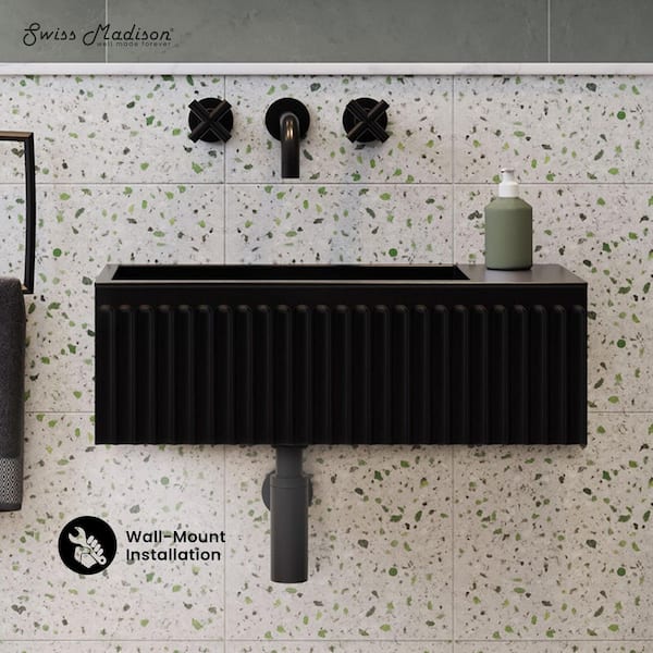 Delice 24 in. Ceramic Rectangular Wall-Mount Bathroom Sink in Matte Black