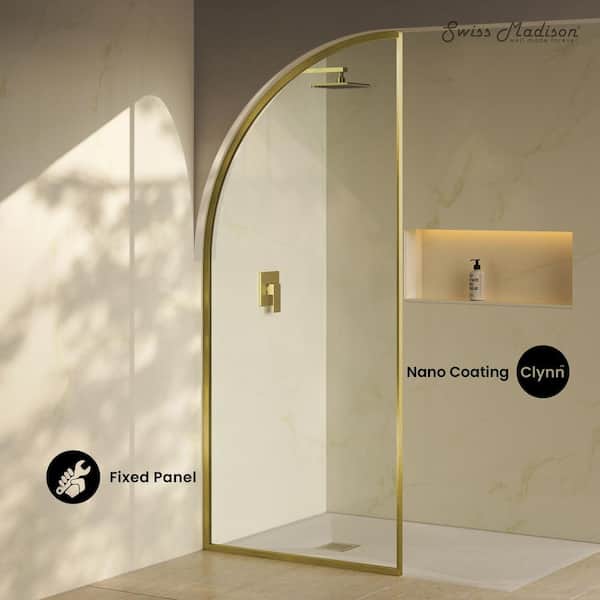 Demi 34 in. x 76 in. Fixed Framed 3/8 in. (10 mm) Clear Tempered Glass Tub Door with Gold Brushed Frame