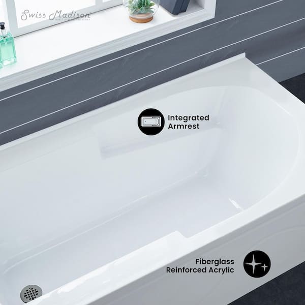 Ivy 54 x 30 Left Drain Soaking Alcove Corner Apron Bathtub in Glossy White with Integrated Overflow, Drain Included