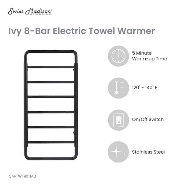 Ivy 8-Bar Electric Towel Warmer in Matte Black