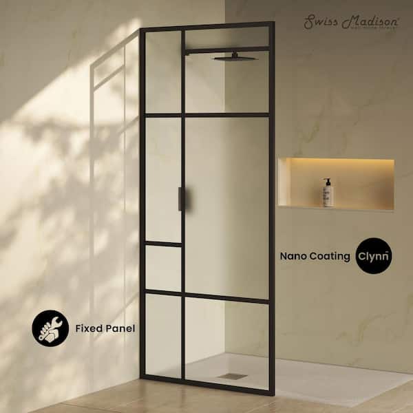 Leiden 34 x 78 Framed Fixed 3/8 in. (10 mm) Frosted Tempered Glass Tub Door with Matte Black Frame