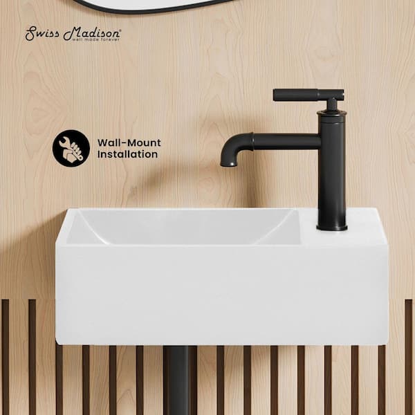 Lisse 16 in. Concrete Composite Rectangle Wall-Mounted Sink With 4 in. Basin Right Side Faucet Mount in Matte White