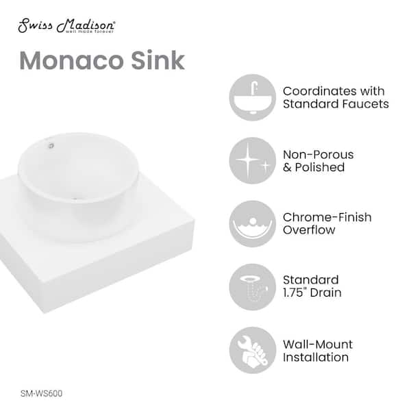 Monaco 24 in. Floating Bathroom Shelf with Vessel Sink in Glossy White