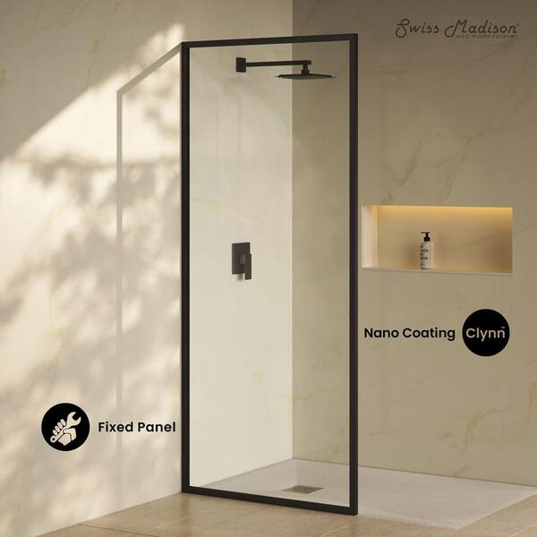 Pierre 34 x 76 Framed Fixed 3/8 in. (10mm) Clear Tempered Glass Tub Door with Black Matte Frame