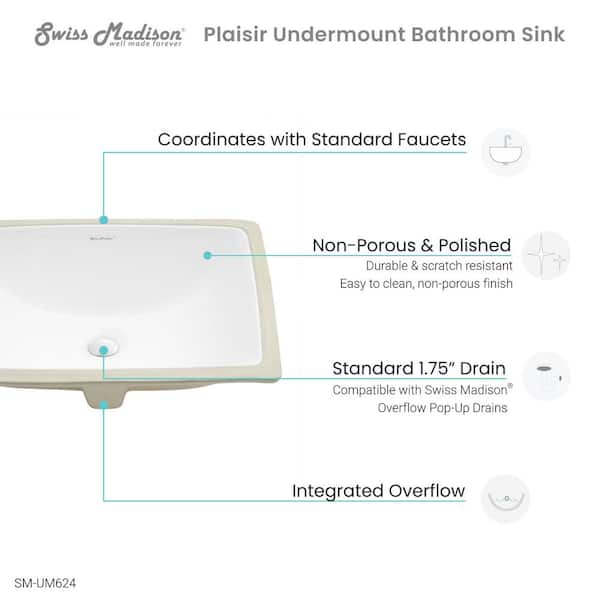 Plaisir 18 in. Rectangular Under-Mount Bathroom Sink in White