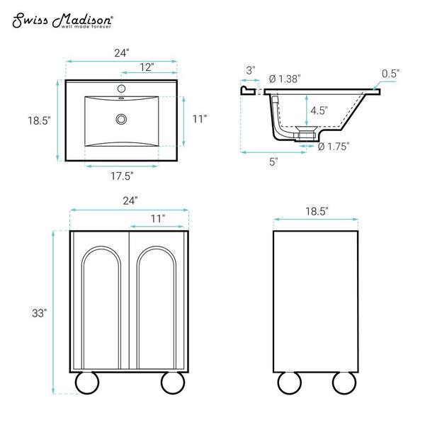 Plaisir II 24 in. Freestanding Bathroom Vanity in Black Oak with Black Ceramic Sink Top