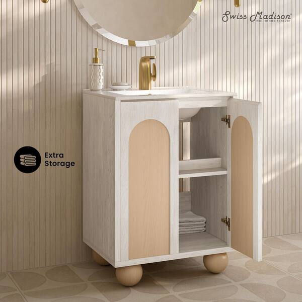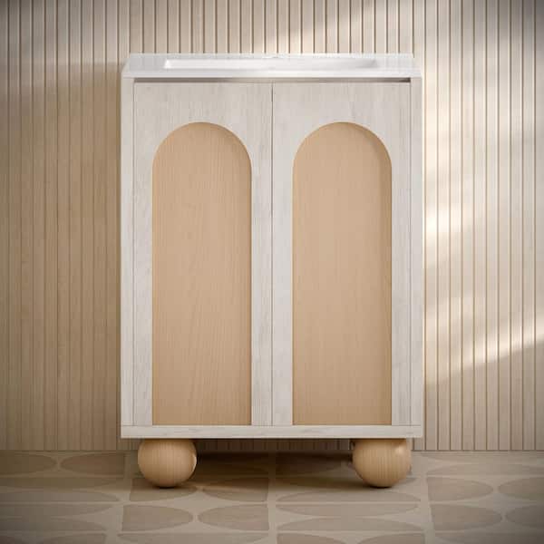 Plaisir II 24 in. Freestanding Bathroom Vanity in White Oak with White Ceramic Sink Top