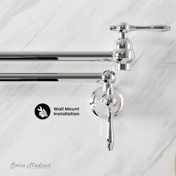 Plaisir Retractable Wall Mount Pot Filler Faucet in Polished Chrome