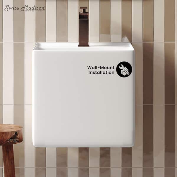 Pur 16.5 in. Square Wall Mount Bathroom Vessel Sink in Glossy White