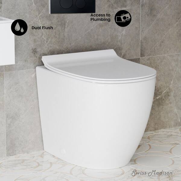 St. Tropez Back-to-Wall Toilet 3-Piece Bundle 0.8/1.6 GPF Dual Flush in Glossy White with Black Flush Plate
