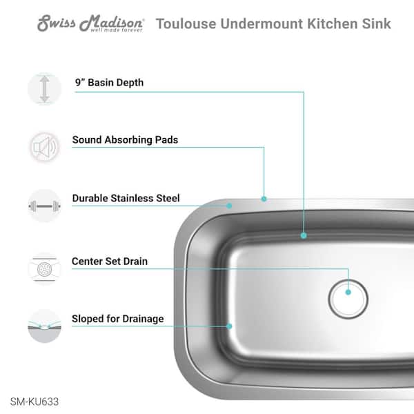 Toulouse Stainless Steel 31 in. Single Bowl Undermount Kitchen Sink