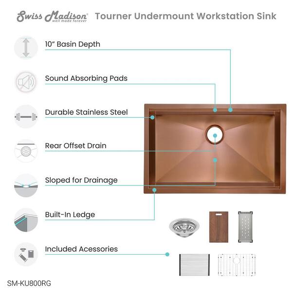 Tourner Stainless Steel 30 in. Single Bowl Undermount Workstation Kitchen Sink