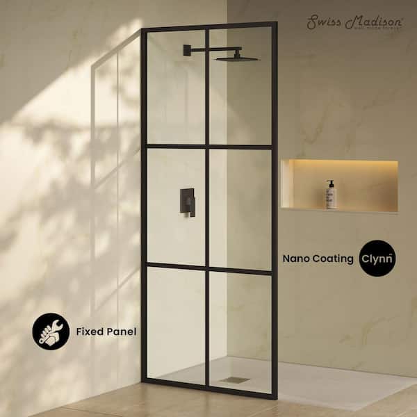 Virage 34 x 76 Framed Fixed 3/8 in. (10mm) Clear Tempered Glass Tub Door with Black Matte Frame