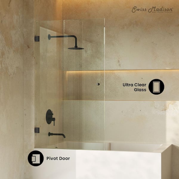 Voltaire 24 in. x 58 in. Frameless Pivot 3/8 in. 10 mm Ultra Clear Tempered Glass Tub Door with Black Matte Hardware