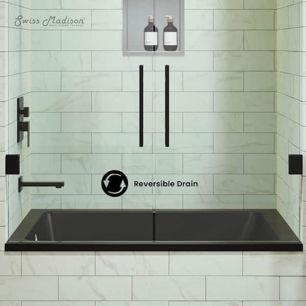 Voltaire 48 in. x 32 in. Rectangular Soaking Drain Drop-In Bathtub with Reversible Drain in Matte Black