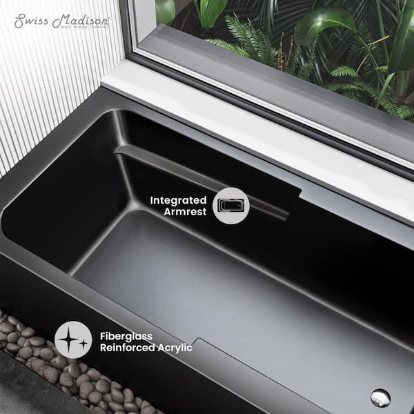 Voltaire 60 x 30 in. Skirted Right Drain Soaking Apron Bathtub in Matte Black with Integrated Overflow Armrest and Drain