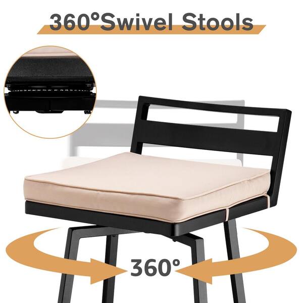 Swivel Metal Outdoor Bar Stools with Cushion, 27 in. H Low Back Bar Stools Set of 2, Patio High Bistro Chairs(2-Pack)