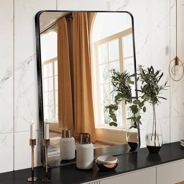 20 in. W x 30.2 in. H Black Rectangle Aluminum Frame Wall-Mounted Bathroom Mirror/Vanity Mirror