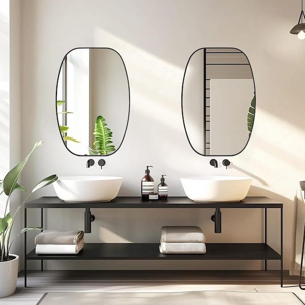 20 in. W x 30 in. H Black Oval Wall Mounted Aluminum Alloy Bathroom Mirror Decorative Mirror(Set of 2)