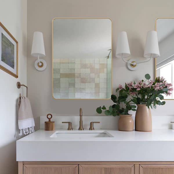 22 in. W x 30.2 in. H Gold Rectangle Aluminum Frame Wall-Mounted Bathroom Mirror/Vanity Mirror