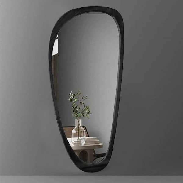 22 in. W x 48.1 in. H Irregular Black Natural Solid Wood Frame Decorative Mirror