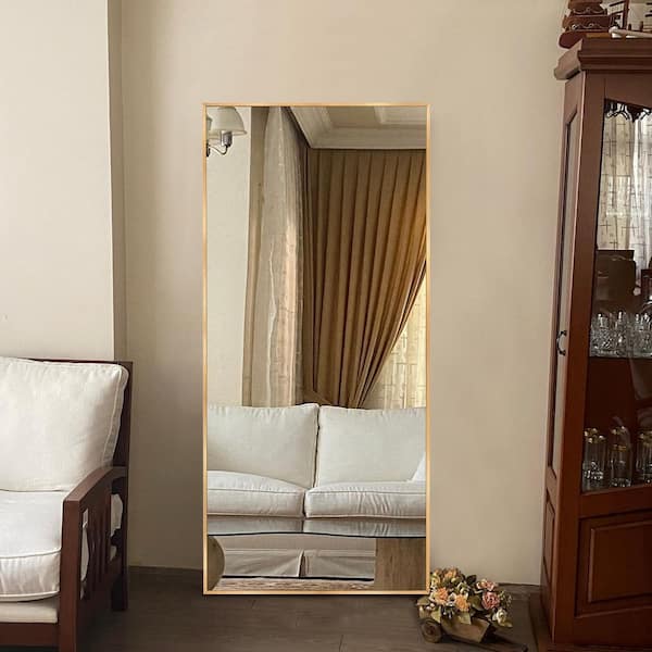 22 in. W x 65.1 in. H Oversized Gold Metal Frame Modern Classic Full Length Floor Standing Mirror