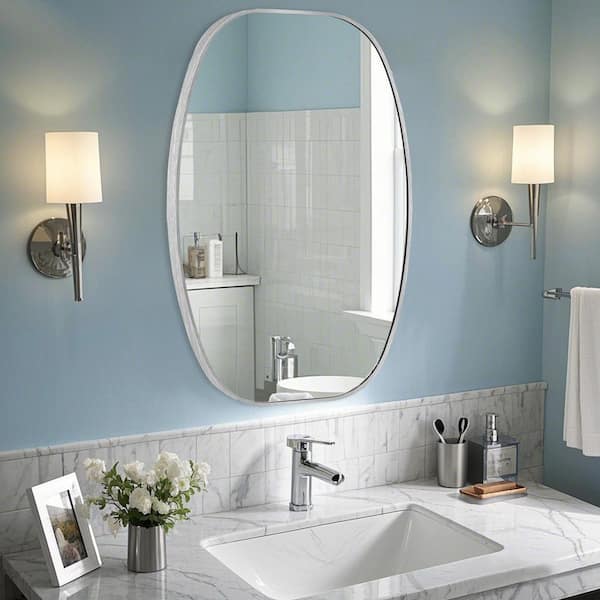 30 in. W x 40 in. H Silver Oval Wall Mounted Aluminum Alloy Bathroom Mirror Decorative Mirror