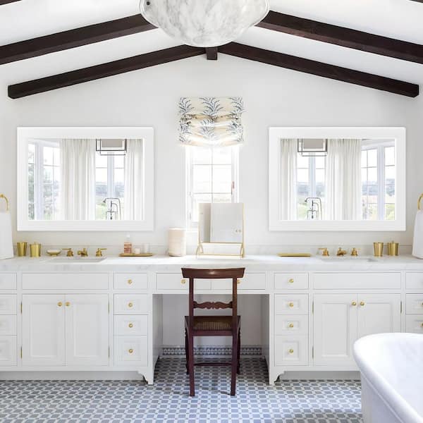 30 in. W x 40 in. H Simple Rectangular White Wood Frame Bathroom Mirror Vanity Mirror Wall Mirror/Floor Mirror