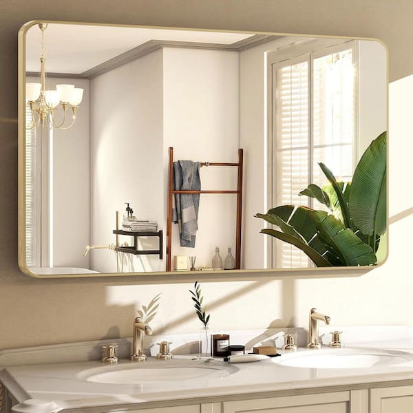30 in. W x 48 in. H Modern Rectangular Aluminum Alloy Gold Rounded Corner Wall Mirror/Decorative Mirror