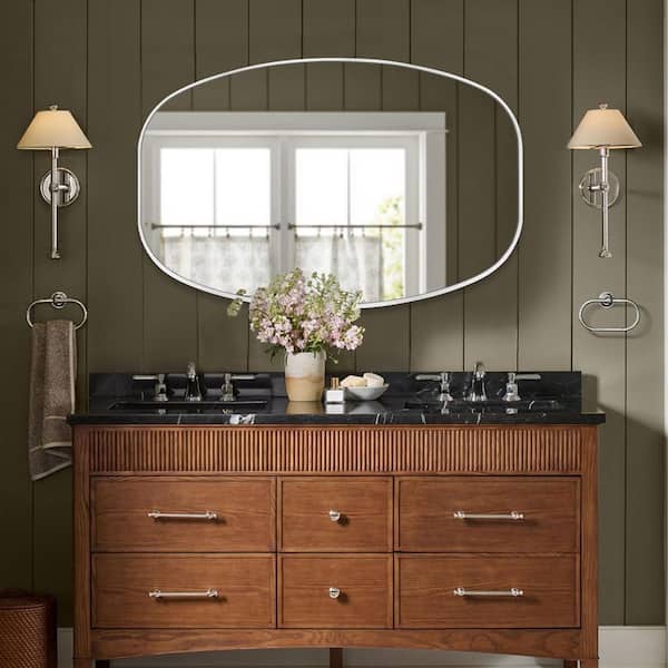 30 in. W x 48 in. H Silver Oval Wall Mounted Aluminum Alloy Bathroom Mirror Decorative Mirror