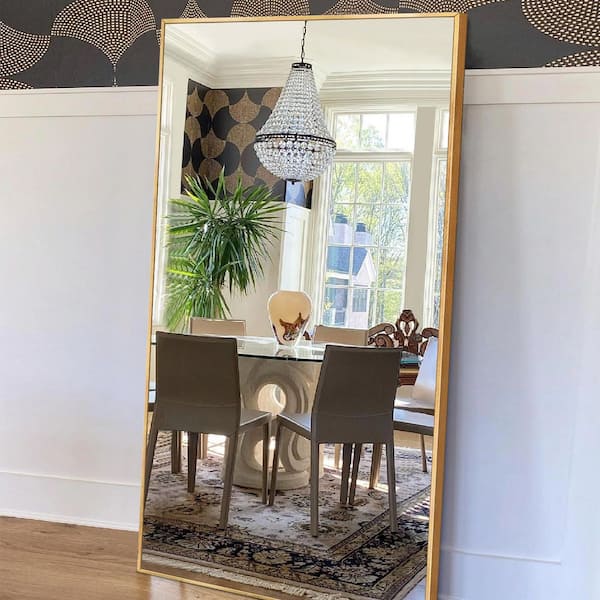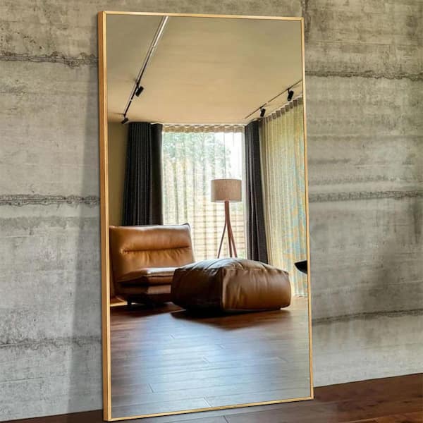 32 in. W x 71.2 in. H Oversized Modern Classic Rectangular Aluminum Frame Gold Full Length Floor Mirror Wall Mirror