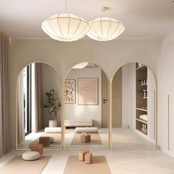 32 in. W x 71 in. H Arched Aluminum Alloy Frame Gold Oversized Full-length Mirror Standing Floor Mirror