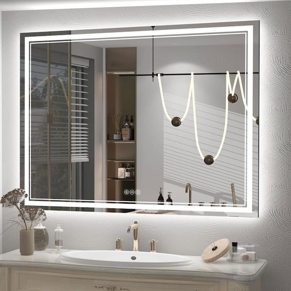 36 in. W x 48 in. H Rectangular Frameless LED Front Light and Backlit Anti-Fog Wall Mirror Bathroom Vanity Mirror